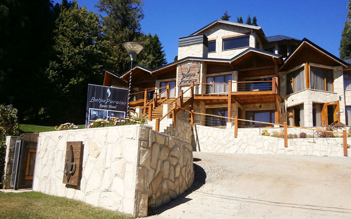 En la hermosa ciudad de San Carlos de Bariloche, en plena Patagonia Argentina, y frente al lago Nahuel Huapi, lo que le proporciona una vista increible por encontrarse a pasos del mismo, nuestro confortable Apart Suites Bahia Paraiso, ofrece una construccion de excelente calidad en piedra y madera con un nivel de calidez y belleza sobrecogedor.