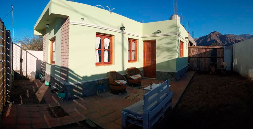 Está ubicada a pocas cuadras del centro de Cafayate, en zona de viñedos con vista a las montañas.